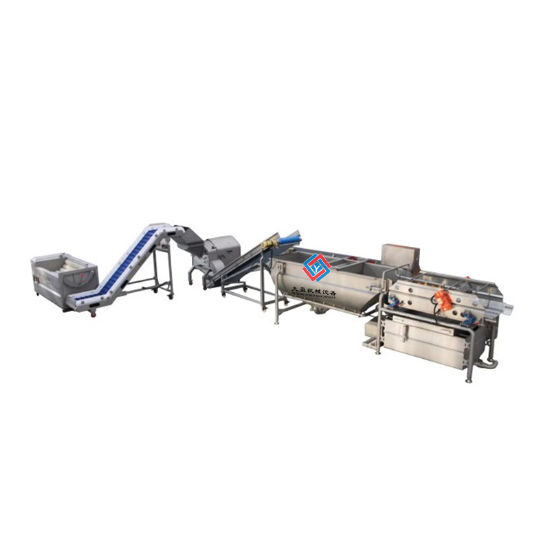 1.根茎类的蔬菜需要先进行毛辊清洗干净之后去品,然后浸入气泡清洗剂洗净之后进入到下一个工序。