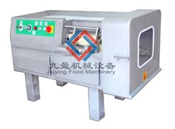切肉丁机也可切圆形如土豆、萝卜等。可将根、茎、叶等蔬菜加工成片、丝、丁、菱、曲线、花丁、花片等。切片装置用于硬菜(萝卜、土豆、水果、薯类)的切片,厚度在1-10毫米内自由调整;往复竖刀将刀成的菜片或软菜(韭菜、芹菜)切成直丝或段、曲线丝、方丁(或形刀)输送带每次移动距离1-20毫米自由调整。所调整量即为丝段的宽度;应注意被切菜直径较粗时(大于30毫米)出片效果才好,便于切丁,直径小时制的片或丁将会杂乱。被切菜加工面平整光滑、规则,组织完好,保持手工切制的效果。