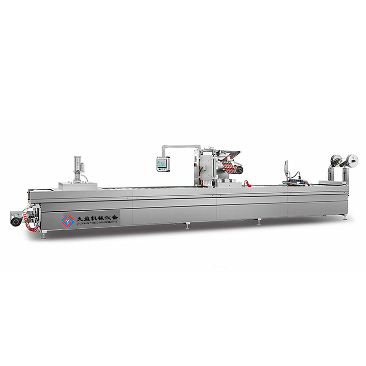 全自动铝箔双面拉伸真空包装机主要用于∶槟榔、鸡蛋干、牛板筋、牛肉、QQ 豆干、臭豆腐等铝箔袋装产品。 技术参数: 型号:JYB-420 机器尺寸:6800*1100*1900mm 上膜宽:396mm 下膜宽:422mm 真空度: <200Pa 压缩空气:>0.6mpa 电源:380V 50Hz 功率:10kw 重量:1700kg